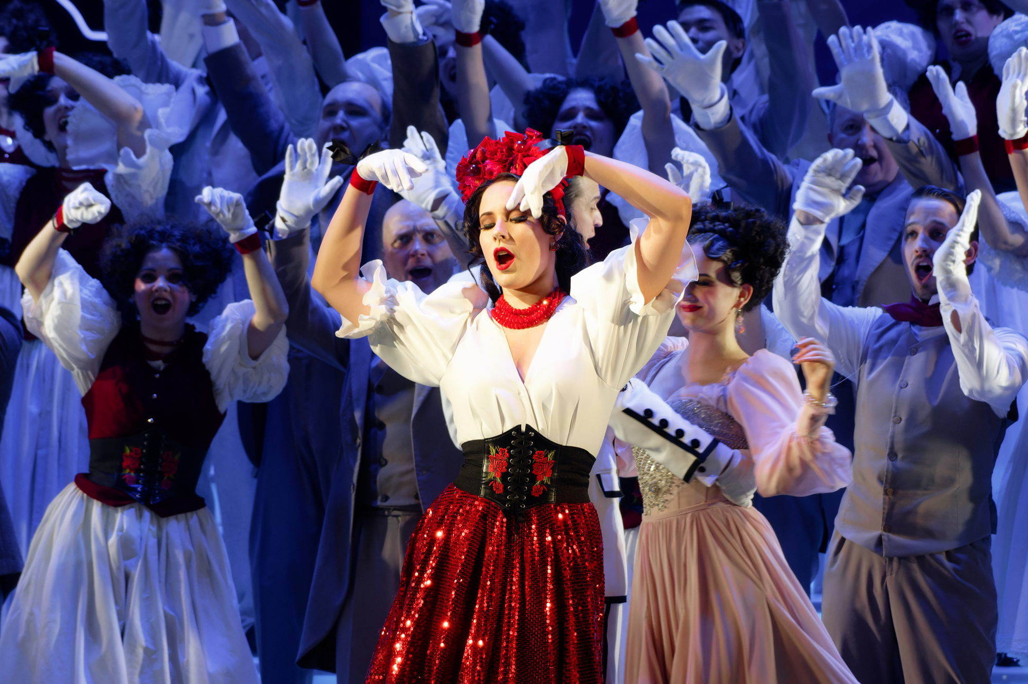 Prašmatnūs spektaklio kostiumai puikuosis scenografo Vaidoto Jakučio sukurtame scenovaizdyje. Aistringuosius operetės šokius pastatė teatro baleto šokėjas, primarijus Valerijus Osadčenko, tai jo – choreografo debiutas. Savo karjerą Osadčenko pradėjo kaip sportinių šokių šokėjas, skynęs laurus ir tarptautiniuose konkursuose, vėliau jis sušoko daug įsimintinų partijų teatro šokio ir baleto spektakliuose. Režisierės pageidavimu jam teko uždavinys pagrindinį operetės šokį valsą kilstelėti į daugiau prasmių skleidžiantį choreografinį numerį, kurio dramaturgijoje įžvelgtume įtampą, jausmus ir santykių dinamiką. Šokis operetėje tapo ne tik pramoga, bet ir pasakojimo dalimi, nes juo pasakoma daugiau nei žodžiais.